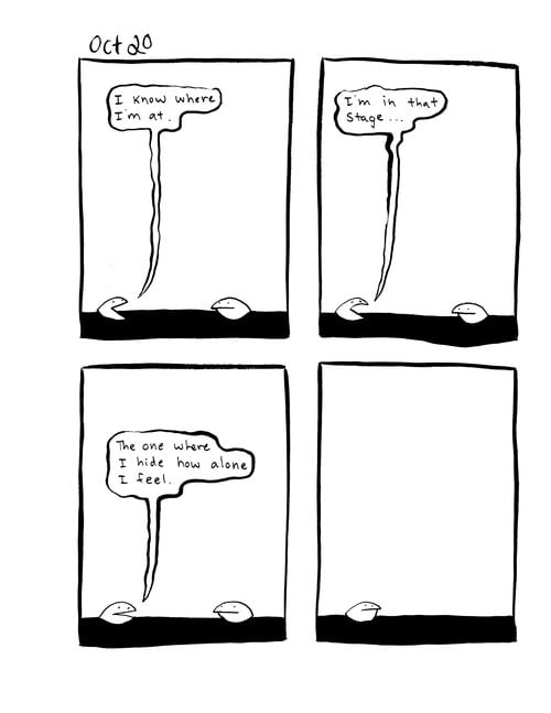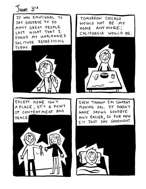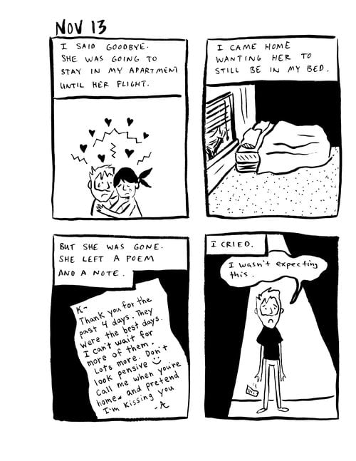 Boundaries is a graphic novel that follows Kyle Harter as he makes a new life for themself in California. During this change, Kyle is forced to confront past trauma that echoes through their professional, personal, and romantic life.